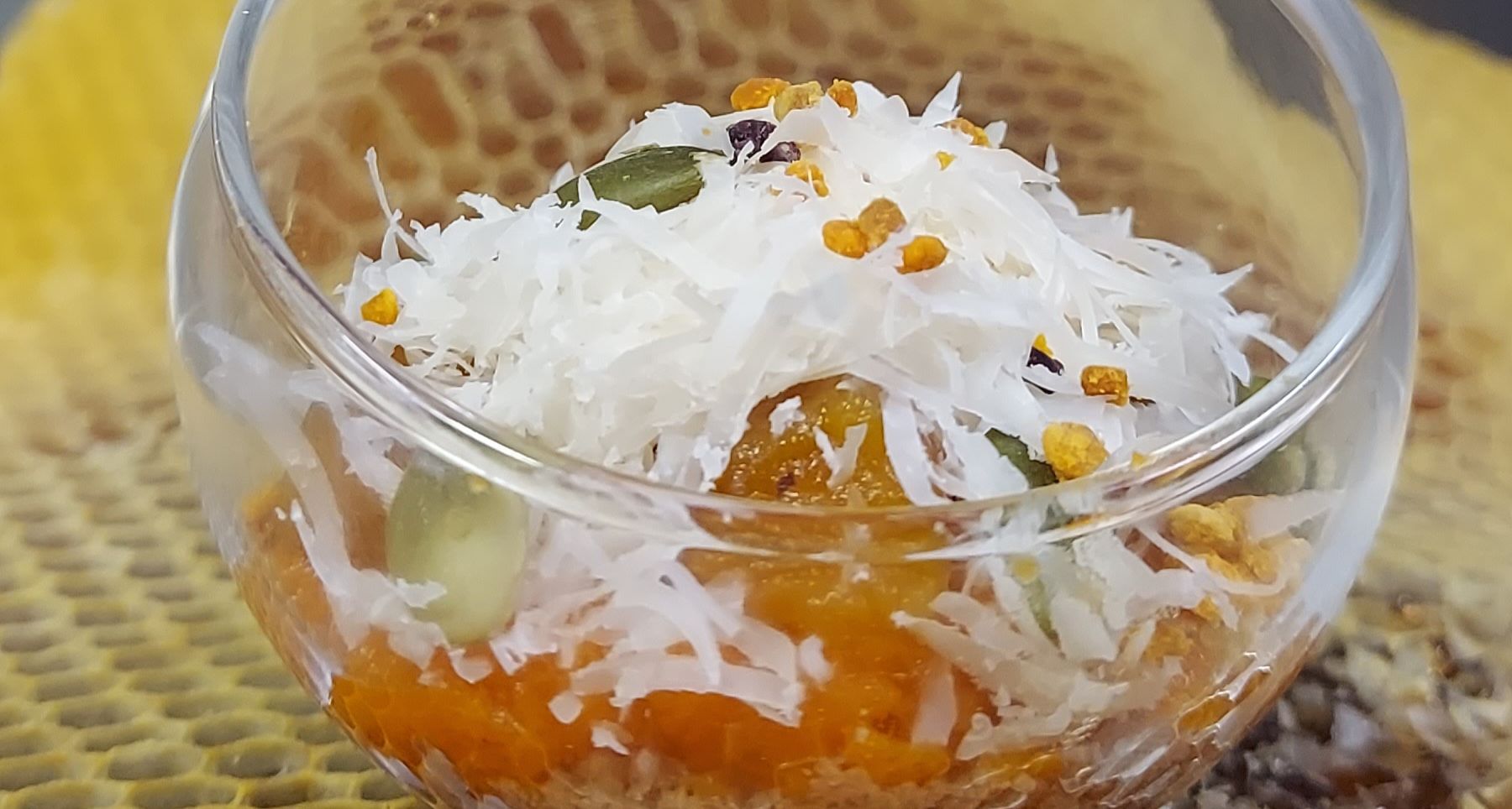 El Restaurante Castillo – Museo de Montemayor del Rio, propone un prepostre basado en el aprovechamiento y la aplicación del principio “desperdicio cero” y la versatilidad de los productos locales que conforman su base. La elaboración del arrope o la aplicación del garrapiñado, recursos tradicionales en desuso, demuestran la apuesta que realiza el establecimiento por la preservación del patrimonio intangible del medio rural salmantino. Pero más allá de los distintos valores añadidos que atesora la propuesta, la calidad de los productos y la suma de elaboraciones dan lugar a un resultado de excelente sabor que merece la pena descubrir.