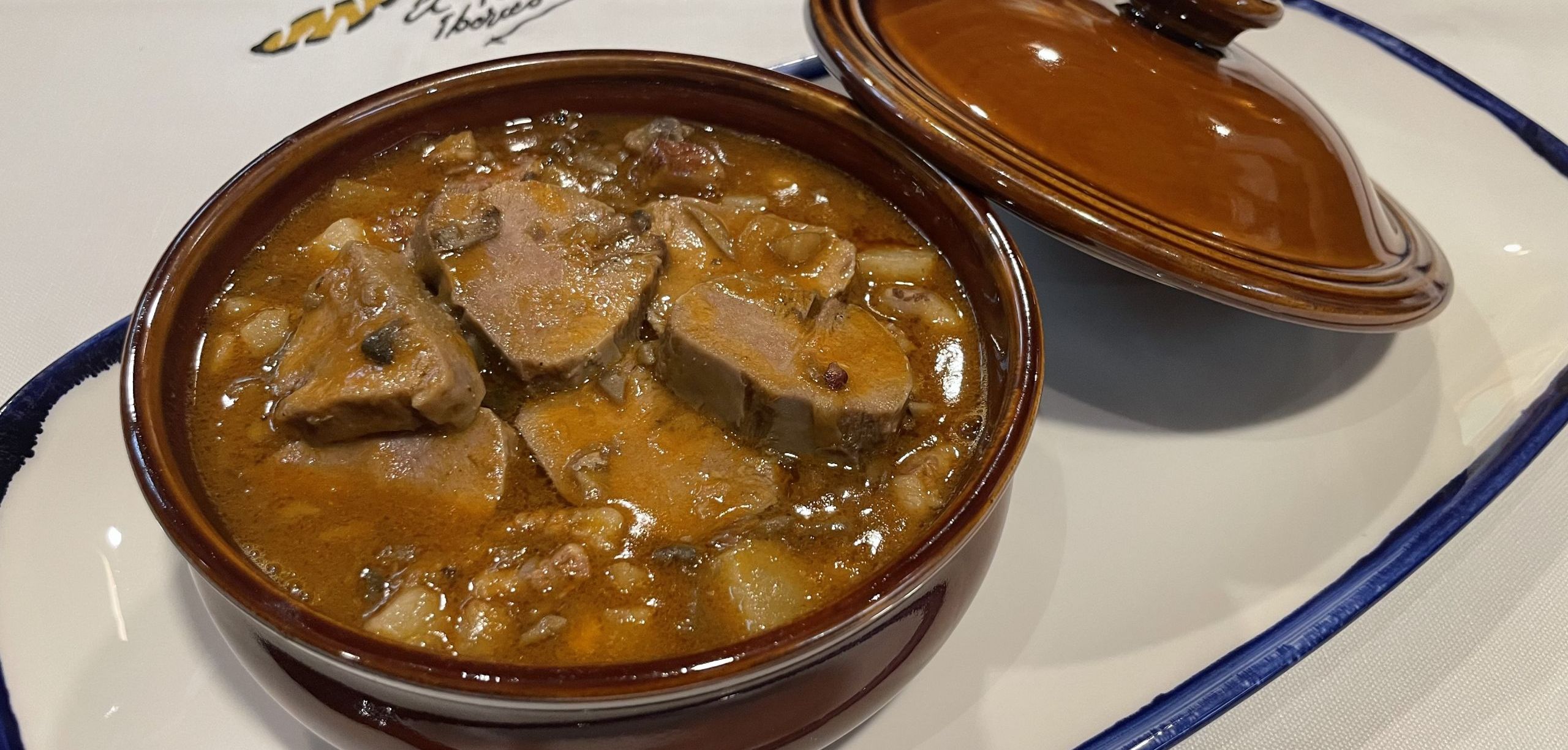 Lengua de cerdo con papada ibérica y setas de temporada.